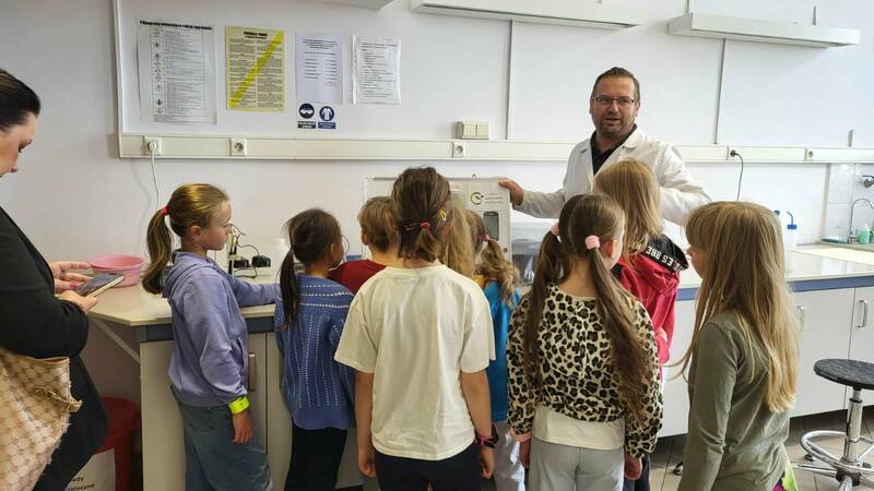 W drugiej części zajęć uczniowie wcielili się w rolę „ekodetektywów”. Warsztaty stanowiły praktyczne dopełnienie wykładu. Dzieci mogły samodzielnie przeprowadzać proste doświadczenia, łącząc naukę z zabawą oraz pobudzając swoją ciekawość i ekologiczne myślenie.