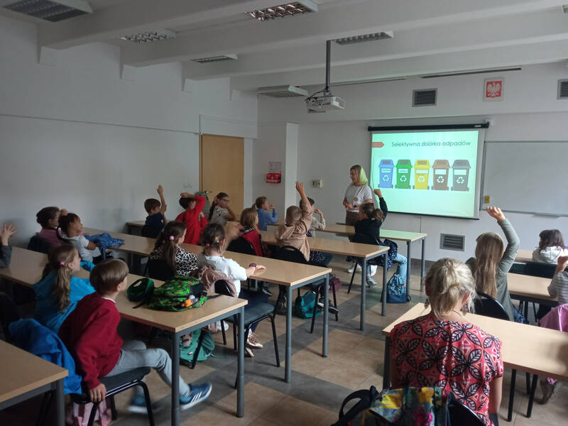 Kluczowe było zaangażowanie uczestników – dzieci chętnie odpowiadały na pytania, rozwiązywały zagadki dotyczące segregacji odpadów i dzieliły się własnymi spostrzeżeniami. Proces recyklingu został przedstawiony jako „magiczna przemiana”, w której np. butelka staje się bluzą polarową, a zużyty zeszyt – nową tekturą. Ta metafora doskonale trafiła do wyobraźni młodych słuchaczy. Podkreślono, że poprzez prawidłową segregację odpadów każde dziecko może stać się „superbohaterem Ziemi”, co spotkało się z entuzjastyczną reakcją.