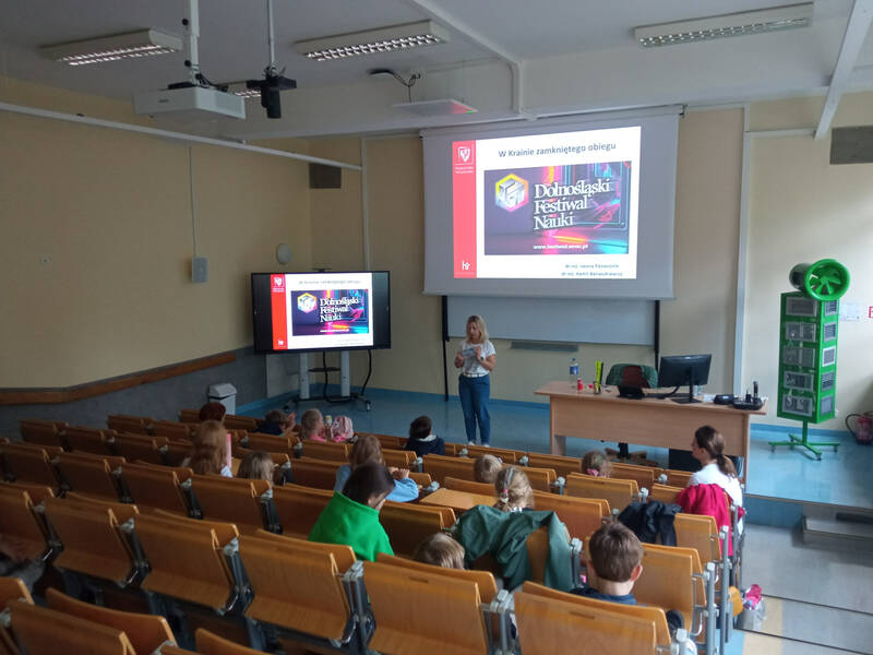 W dniach 17 i 19 września 2025 r., w ramach XVIII edycji Dolnośląskiego Festiwalu Nauki, na Wydziale Inżynierii Środowiska odbyły się zajęcia zatytułowane „W Krainie Zamkniętego Obiegu”. Wydarzenie zostało przygotowane przez przedstawicieli Katedry Gospodarki Wodno-Ściekowej i Technologii Odpadów i skierowane było do najmłodszych odbiorców – uczniów szkół podstawowych.